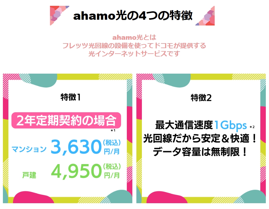 フレッツ光や他の大手光回線では、5,000円以上が当たり前の中、ahamo光のこの価格は非常に魅力的です。